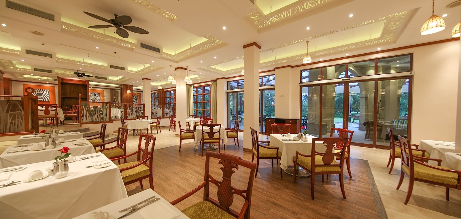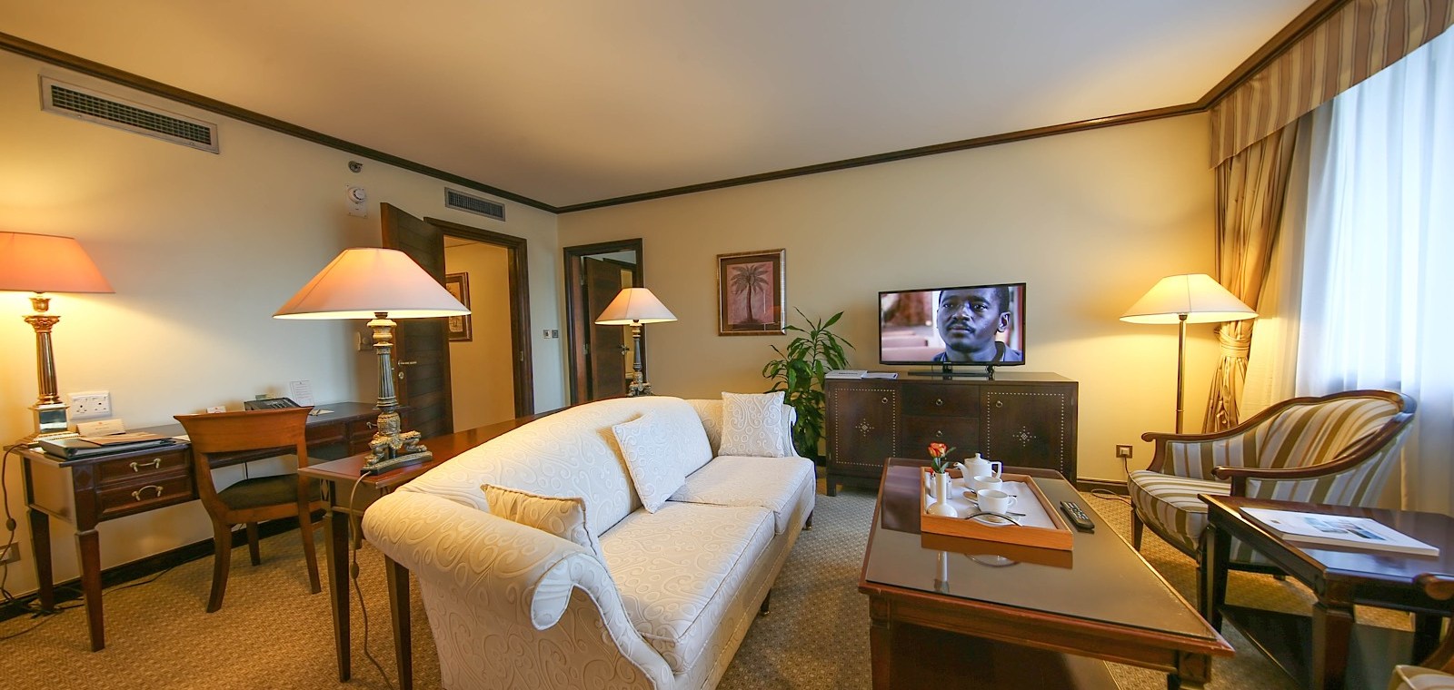 The hotel offers a large collection of spacious, renovated rooms with either garden or city views, finished in warm African tones that give the interiors a welcoming feel. Accommodation ranges from standard rooms to executive categories and suites, making it suitable for different travel styles, from solo business guests to families and VIP travelers who want extra space and privacy. In-room amenities are designed for modern comfort, including air conditioning, Wi-Fi, satellite TV, minibar, safe, and tea and coffee facilities, everything needed to settle in smoothly after travel or a full day in the city.