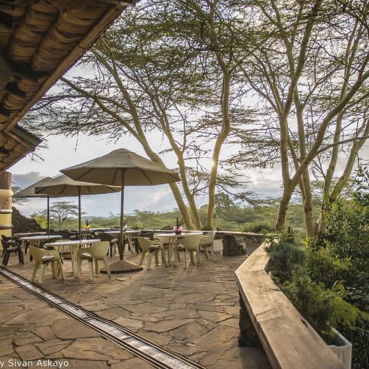What many guests remember most is the view. The breakfast terrace and viewing platform look out across the Momella area, where wildlife can often be seen nearby, while the mountains frame the horizon in a way that feels almost cinematic. Sunsets here can be extraordinary, with warm light falling over the landscape and, on clear evenings, the snow-capped presence of Kilimanjaro adding a final touch of magic.