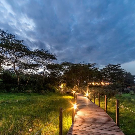 Hatari Lodge is one of Tanzania’s most character-filled stays, a place where scenery, history, and atmosphere come together in a way that feels genuinely special. Set on the northern edge of Arusha National Park at a higher altitude, the lodge enjoys a cooler climate and sweeping views across lakes, craters, rainforest, and the wildlife-rich Momella swamps. On clear days, the backdrop is unforgettable, with Mount Meru rising elegantly nearby and Mount Kilimanjaro dominating the horizon in the distance.